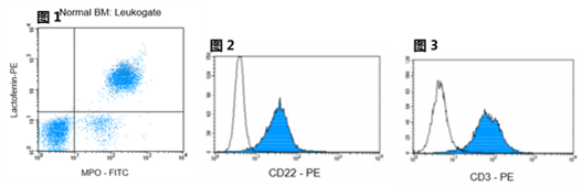 圖1 Flow cytrometric analysis of normal bone marrow (BM) after fixation and pemeabilization using GAS-002, followed by immunostaining for lactoferrin and MPO-C2.