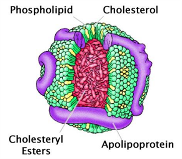 脂蛋白由脂質(zhì)和蛋白質(zhì)以非共價(jià)作用結(jié)合而組成,其外層是磷脂(phospholipids)、未酯化的膽固醇(cholesterol)和蛋白質(zhì),核心是中性脂質(zhì),包括膽固醇酯(cholesteryl esters)和三?;视?TAG)。載脂蛋白(Apolipoprotein)是一種蛋白質(zhì),它與其他親水脂性分子一起圍繞在脂質(zhì)周圍,共同構(gòu)成脂蛋白。這種結(jié)構(gòu)讓脂蛋白能夠通過水基循環(huán),特別是血液和淋巴循環(huán)進(jìn)行體內(nèi)運(yùn)輸。
