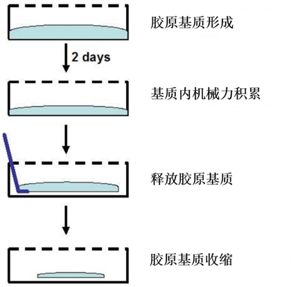 細(xì)胞收縮后膠原基質(zhì)的形態(tài)變化(虛線表示膠原基質(zhì)的邊緣)