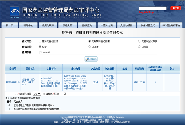 Pfanstiehl致力于為全球生物制劑公司提供高質(zhì)量注射級藥用輔料,主要產(chǎn)品注射級海藻糖(T-104-4)、蔗糖(S-124-2-MC和S-124-1-MC)、甘露醇(M-109-7)、無水琥珀酸鈉(D-160)、六水琥珀酸鈉(D-161)、組氨酸(H-116)、組氨酸鹽酸鹽(H-117)、精氨酸(A-170)等產(chǎn)品已經(jīng)獲得CDE藥用輔料注冊號,其中海藻糖和蔗糖已經(jīng)處于激活狀態(tài)。