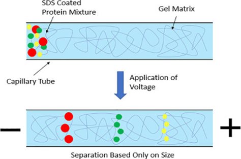 CE-SDS是一種在變性條件下檢測蛋白純度的方法,方法原理與SDS-PAGE(十二烷基硫酸鈉聚丙烯酰胺凝膠電泳)類似,與SDS-PAGE相比,CE-SDS是以高壓直流電場為驅(qū)動力,以彈性石英毛細(xì)管為分離管道,毛細(xì)管內(nèi)先填充凝膠,此時凝膠會在毛細(xì)管內(nèi)形成分子篩,樣品依分子量的大小在毛細(xì)管內(nèi)移動速度不同而進(jìn)行分離,能夠有效減少組分?jǐn)U散,所得峰型尖銳,分離效率高。因此,CE-SDS具有上樣量小、通量大、分辨率高、重復(fù)性好、可精確定量抗體降解碎片等優(yōu)點(diǎn),用于還原和非還原單抗藥物的純度分析,免去了復(fù)雜的人工操作,在還原模式中還可以實(shí)現(xiàn)非糖基化重鏈(NGHC)的精確定量。