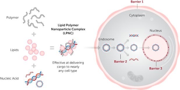 不同于傳統(tǒng)基于單組分的轉(zhuǎn)染試劑(如陽離子聚合物或陽離子脂質(zhì)體),為了進(jìn)一步提高轉(zhuǎn)染效率,以應(yīng)對不同細(xì)胞類型或特定的應(yīng)用。Mirus將專利的多聚物(Polymer)及脂質(zhì)(Lipids)技術(shù)進(jìn)行多重組合,在不形成脂質(zhì)體復(fù)合物(即liposome,通常具有細(xì)胞毒性)前提條件下,得到多種類、高性能的轉(zhuǎn)染方案,克服細(xì)胞遞轉(zhuǎn)過程中的多重阻礙,以實(shí)現(xiàn)更高效轉(zhuǎn)染和更低的細(xì)胞毒性(圖2)。