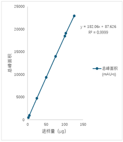 圖3. 舟帆生物ZF-LC-0001流動相線性及進樣量與總峰面積數(shù)據(jù)