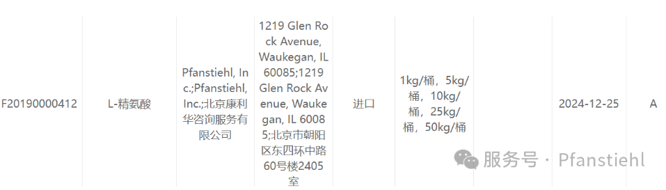 “ 熱烈祝賀Pfanstiehl品牌注射級(jí)精氨酸A-170 CDE注冊(cè)登記號(hào)F20190000412已激活!”Pfanstiehl新年喜訊頻傳,注射級(jí)精氨酸A-170 CDE登記號(hào)F20190000412激活了。Pfanstiehl品牌注射級(jí)精氨酸A-170,秉承一貫高品質(zhì)理念,具有超高純度,超低內(nèi)毒素,超低金屬殘留的特點(diǎn),單獨(dú)檢測(cè)29種金屬離子,并且新增DNA,RNA,DNA酶,RNA酶和脂肪酶,亞硝酸鹽等多項(xiàng)質(zhì)量指標(biāo)的檢測(cè),符合多國(guó)藥典規(guī)定(USP, EP, JPE, ChP),可用于生物治療性藥物和疫苗的生產(chǎn)。· 產(chǎn)品名稱: L-Arginine, High Purity, Low Endotoxin,