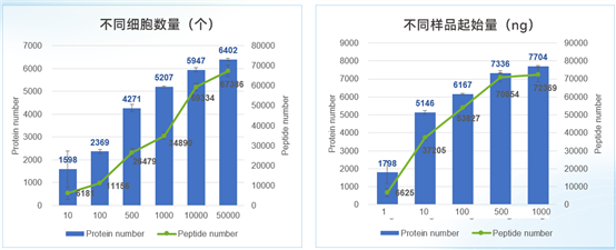 100ng可以穩(wěn)定檢測到約6000種蛋白質(zhì)。最低樣本初始量可低至或1ng(相當(dāng)于10個(gè)細(xì)胞)。