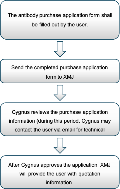All users must fill out the Cygnus HCP Affinity-Purified Antibody Purchase Application Form according to their actual application needs before applying to purchase HCP affinity-purified antibodies. Only after approval by Cygnus can users obtain a quotation and proceed with the purchase. The specific purchase application process is as follows: